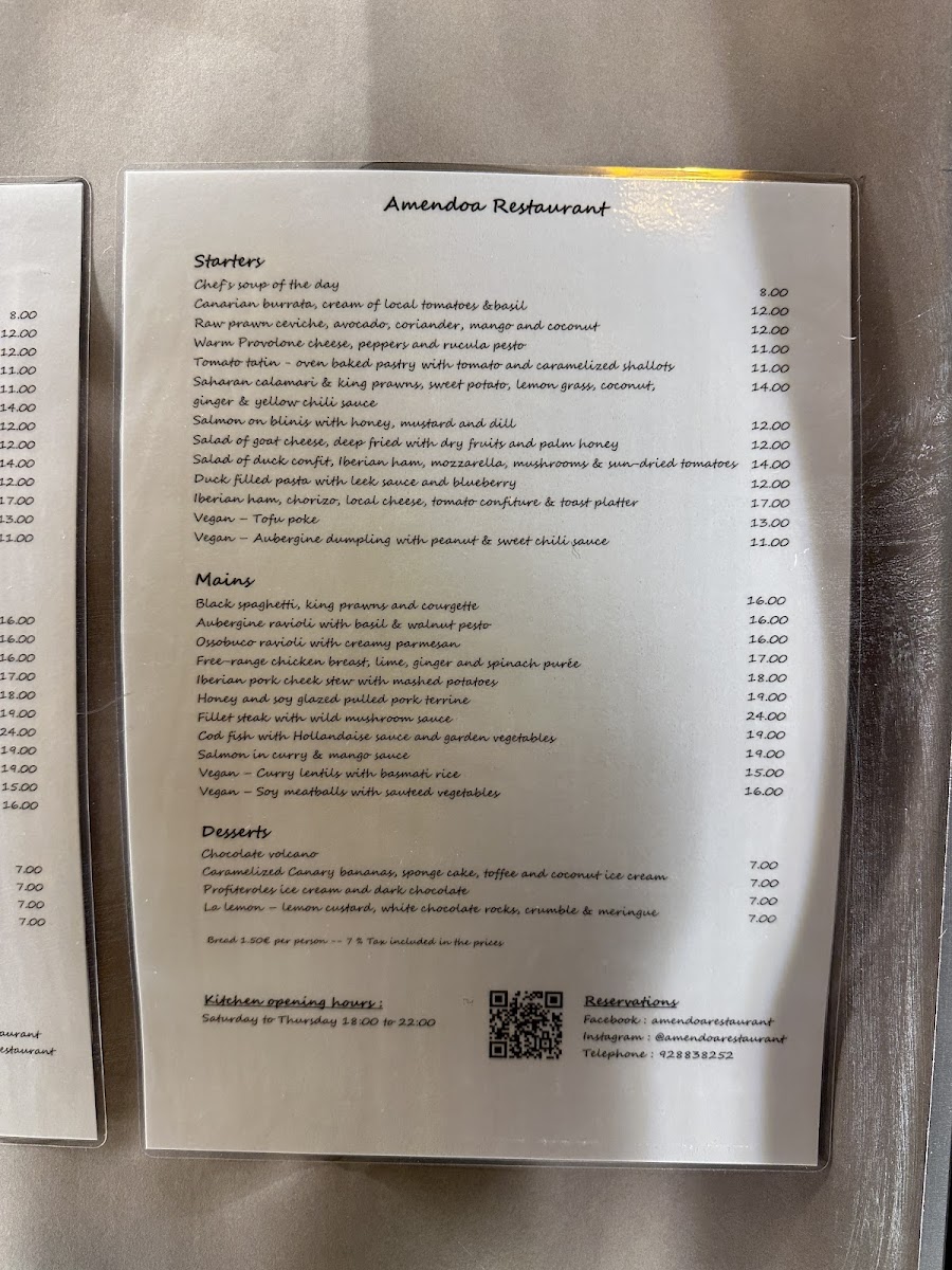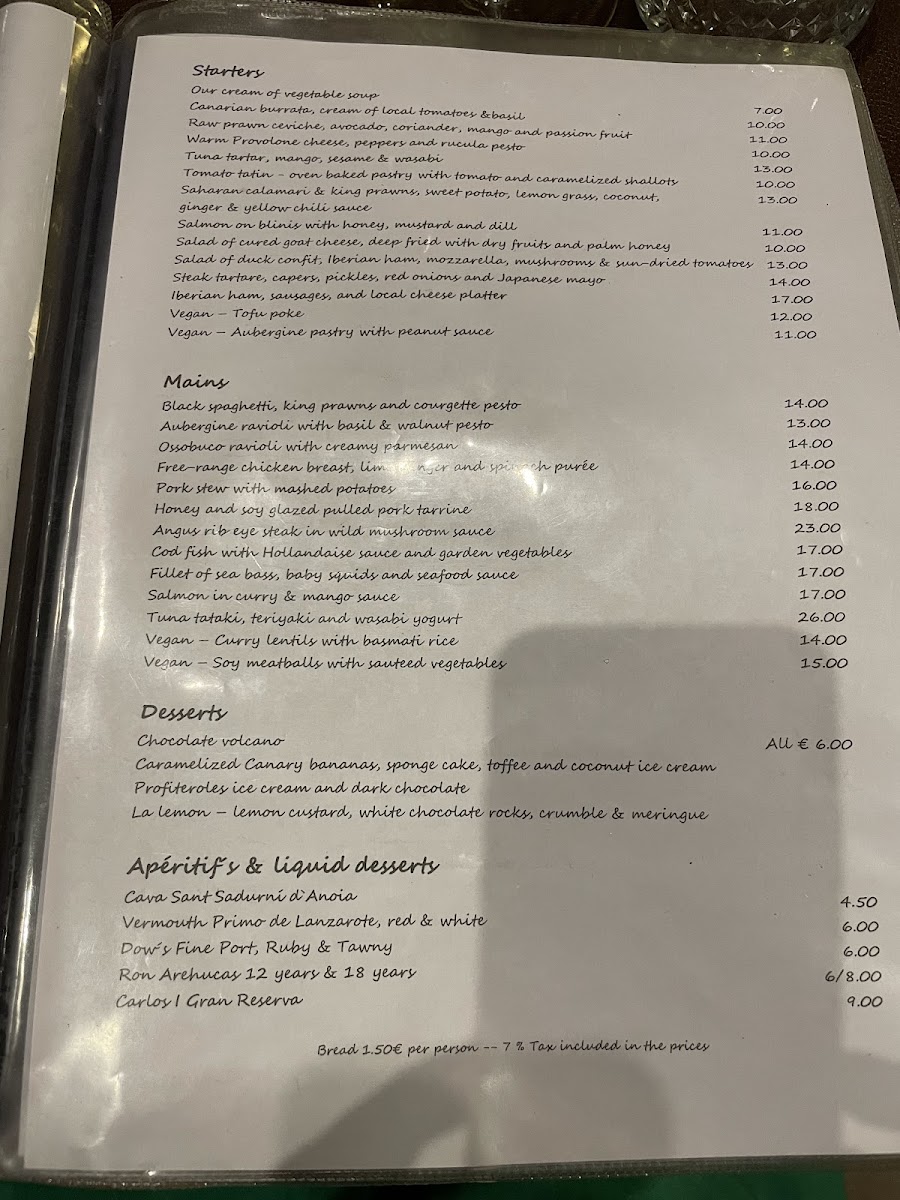 The menu works well for a variety of occasions—whether enjoying a leisurely lunch, a casual dinner, or a special evening out. You might start with light, flavorful starters like the Blinis de Salmón or a fresh Burrata Canaria con Salmorejo, setting a calm and inviting tone for what’s to come. Main plates such as the Steak Tartar or Lubina fish bring a satisfying depth, perfect for savoring amid the restaurant’s stylish yet comfortable environment.